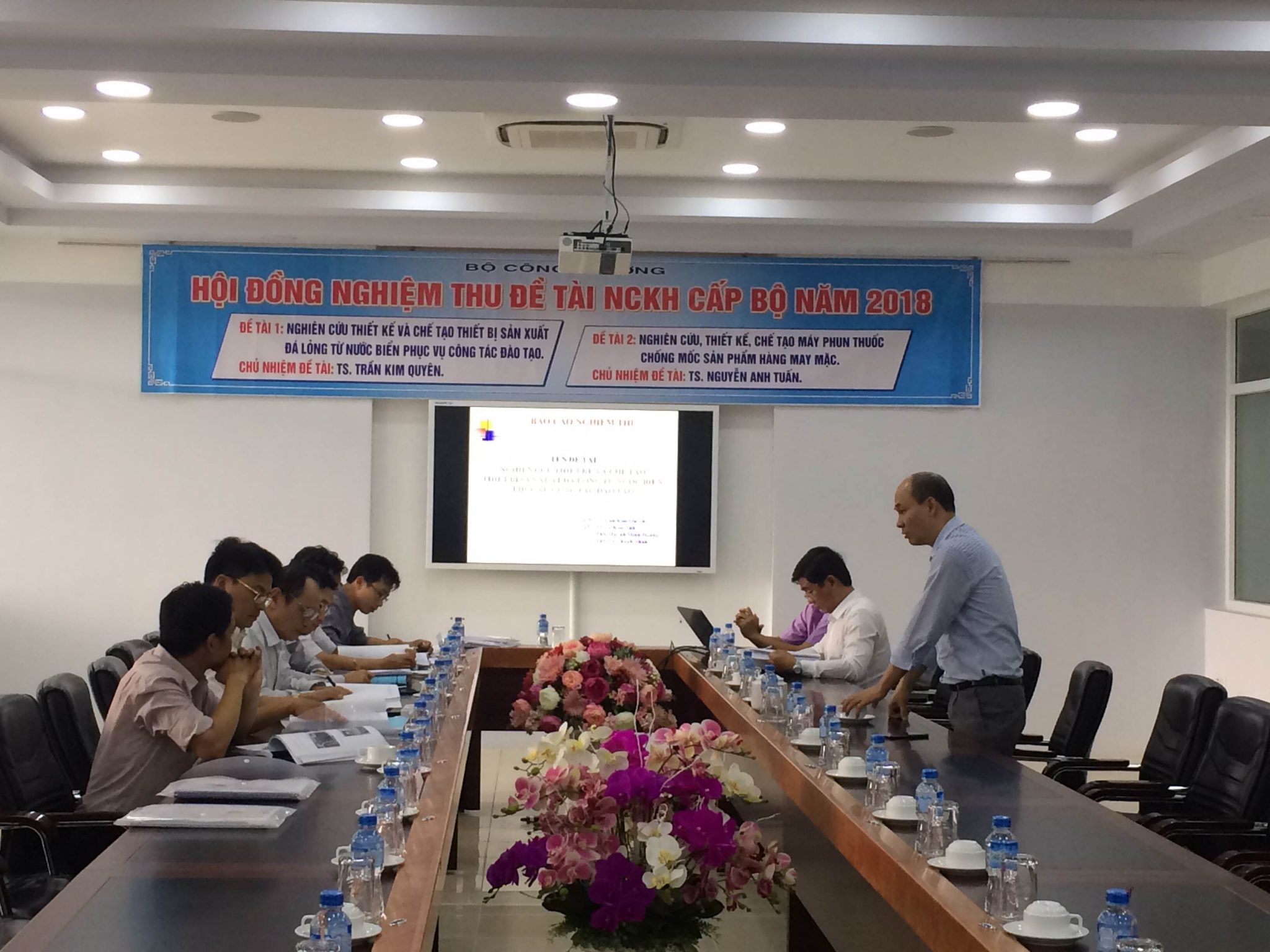Hội đồng nghiệm thu đề tài NCKH cấp Bộ: “Nghiên cứu thiết kế và chế tạo thiết bị sản xuất đá lỏng từ nước biển phục vụ công tác đào tạo” của nhóm tác giả trường Cao đẳng Công Thương miền Trung
